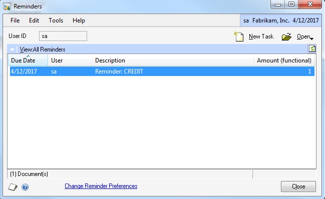 Now, instead of stopping the user in their tracks to make this decision on the fly the Credit Manager can manage this Process Hold separate from the Order Entry Process. To do this, we used SmartList Builder to build a SmartList that displayed SOP Documents On Hold. Then, we added a Favorite with a Reminder to the SmartList to show only SOP Documents with the "CREDIT" Process Hold applied.