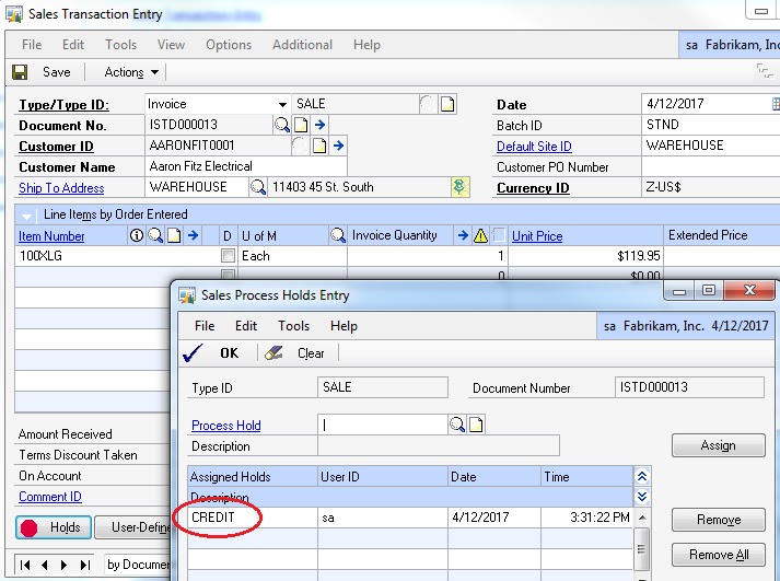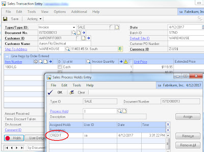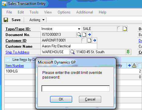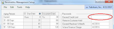 I was presented with a business process problem by a client related to managing Credit Limit overrides in Dynamics GP Sales Transaction Entry. This company does not supply Order Entry users with the Credit Limit override password. It's the Credit Manager's responsibility to decide whether or not to allow that override.